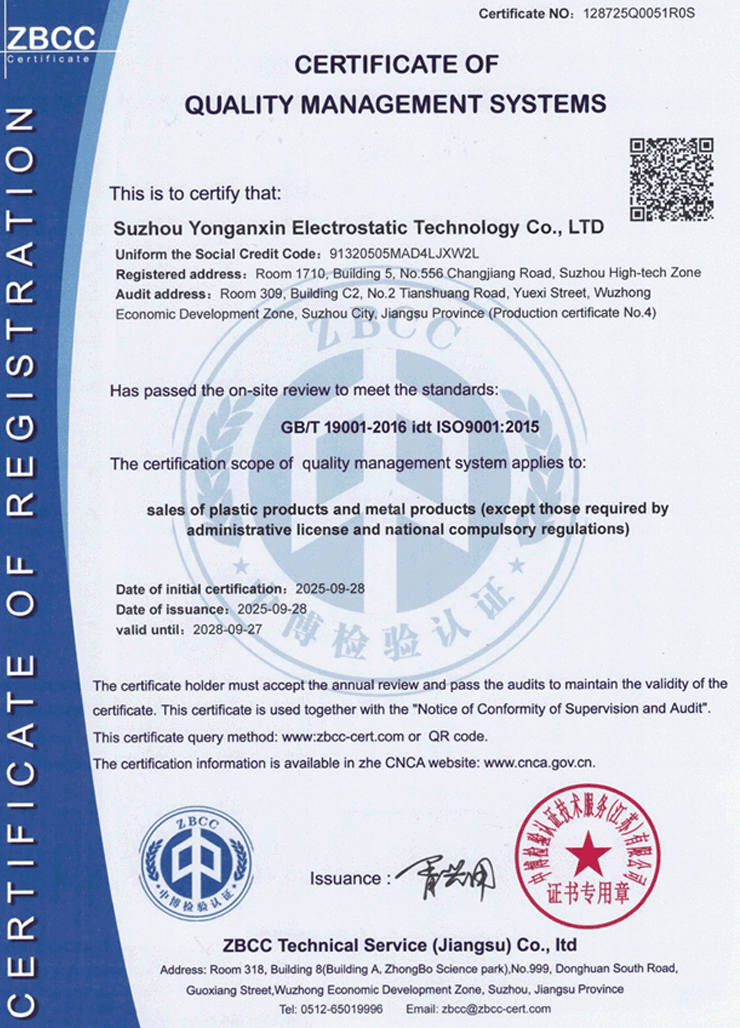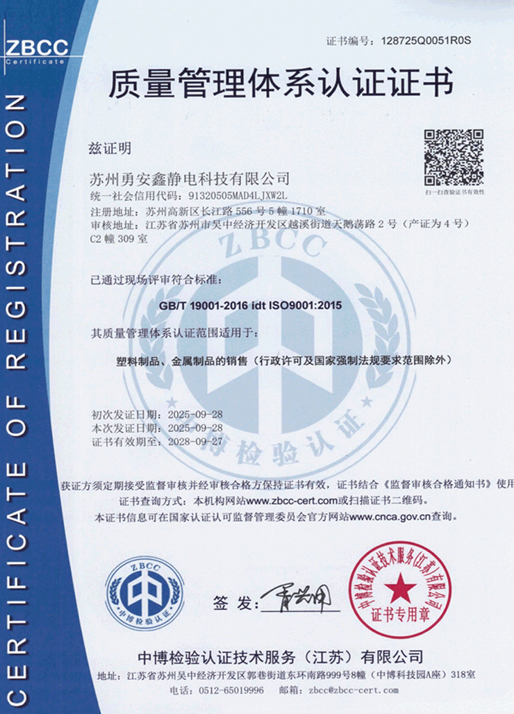 苏州勇安鑫静电科技有限公司成立于2023年,是专注于静电防护(ESD)产品的科技型企业。公司集防静电产品的研发设计、生产制造与销售服务于一体,致力于为半导体、精密仪器及电子行业提供专业的静电防护包装解决方案。